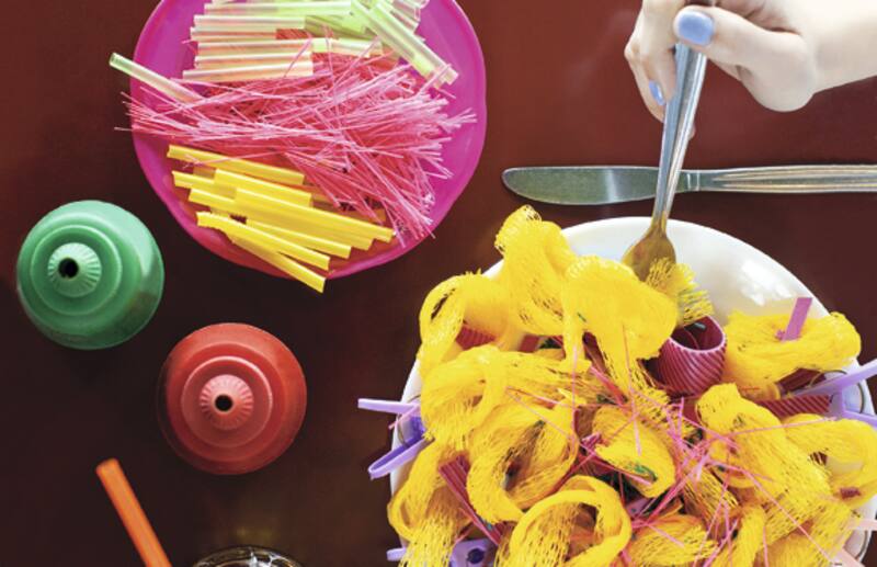 Cristina vive con su familia en una parcela en Curacaví. En su cocina los vasos son de vidrio, los platos de loza y los manteles de género. A sus hijos les compra ropa, sábanas y toallas de telas naturales y se fija en las etiquetas que no tengan fibras plásticas como poliéster. Algo fácil de encontrar cuando eran guaguas, pero que se dificulta cuando entran a la adolescencia. La colación de los niños –en loncheras de género– se las guarda en frascos de vidrio y en sus estuches de lana tienen crayones de tinturas naturales, plumas y tinta, pero nada de lápices pasta ni gomas de borrar de plástico. Va al supermercado y ferias orgánicas con bolsas de género y elige comida y productos envasados en vidrio, papel o cartón. "Es una opción más trabajosa, a veces más cara y no siempre lo logro. Casi todos los productos de aseo vienen en plástico. En ese caso, elijo el envase más grande y lo voy rellenando", dice. Y concluye: "No es fácil evitar los plásticos en un mundo cada vez más invadido por ellos, pero al menos lo de tu casa lo puedes controlar".