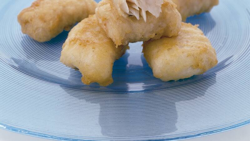 2. Preparar el pescado. En otro bol mezclar la harina, yema, 2 cucharadas de aceite y cerveza. Sazonar con sal y pimienta. Dejar reposar 5 minutos y agregar, con movimientos envolventes, las claras. Añadir, de a poco, el pescado hasta cubrir.