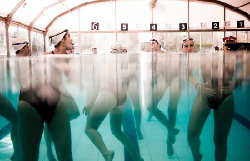 El nado sincronizado puede practicarse de manera individual, en duetos, equipos de ocho o de diez, y requiere resistencia, flexibilidad, gracia y precisión, así como un gran control de la apnea. "Desde chica aprendes a 'ahogarte', porque si en una competencia tragas agua, tienes que seguir y salir sonriendo. Para los torneos nos pintamos con maquillaje resistente al agua y usamos jalea sin sabor para fijar los peinados. Es un deporte artístico, pero también riguroso", dice la seleccionada nacional Catalina Costa (21). Las nadadoras son penalizadas si lucen cansadas, no sonríen o tocan el fondo de la piscina. Y si en un entrenamiento alguna pisa el fondo, se castiga a todo el equipo, que debe nadar 300 metros o hacer verticales, como llaman al movimiento de levantar el cuerpo fuera del agua. "Pagamos todas, porque somos un equipo", dice Catalina.