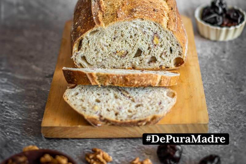 Justamente uno de los panes más apetecidos por sus clientes, es la Hogaza Ciruela Nuez. “Nos preocupamos de usar materias primas de primera calidad, nuestras ciruelas las compramos en Talca y es un producto de exportación lo que le entrega carácter a nuestro pan”, dice Constanza. La corteza crujiente de esta hogaza da paso a un interior suave y esponjoso. “La masa madre, fermentada por más de 24 horas, le entrega un sabor profundo, el que se equilibra con el sabor de las ciruelas y nueces”, complemente. Es un pan Ideal para desayunos y también para acompañar picoteos como una tabla de queso, untar con mermeladas o simplemente disfrutar solo.