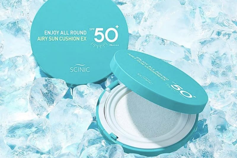 Así es este bloqueador solar Enjoy All Round Airy Sun Cushion EX (SPF 50+ PA++++), de Scinic; muy cómodo, se siente fresco y suave, gracias a sus filtros solares a base de minerales, óxido de Zinc y óxido de Titanio. La principal característica de este formato es que puede aplicarse fácilmente incluso estando maquilladas, ya que se adhiere sutilmente sobre la base de maquillaje sin arruinarlo ni dejar una sensación grasosa. Al principio deja un efecto blanqueado pero éste desaparece después de un rato.