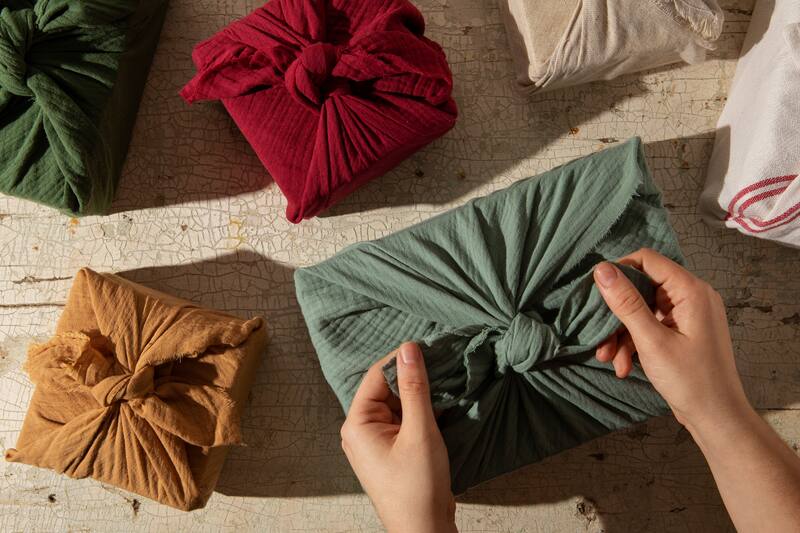 El furoshiki es una técnica ancestral japonesa que consiste en doblar una tela para envolver objetos, similar al origami, y facilitar su transporte. La palabra furoshiki se refiere tanto al método como al cuadrado de tela utilizado. Y es excelente para esta época del año en que los envoltorios de papel crean toneladas de basura innecesaria.