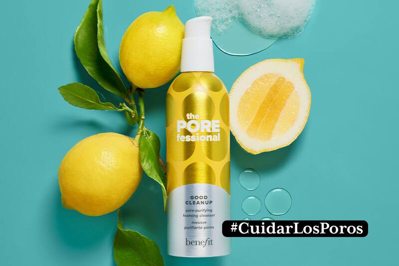 El encargado de esta misión dentro de la línea de Benefit es el limpiador espumoso The POREfessional Good Cleanup, un gel que, al mezclarlo con agua, produce una exquisita y suave espuma. Está hecho a base de extracto de limón, extracto de yuzu, bisabolol y esfingolípidos, moléculas similares a las ceramidas que ayudan a preservar la hidratación inicial de la piel. Una combinación de ingredientes que –después de un mes de uso– deja la piel limpia, suave e iluminada, y los poros se ven y sienten purificados.