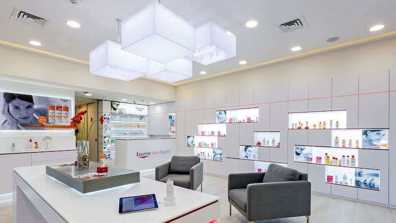 Único en su tipo en Chile y en el mundo es Eucerin Face Expert Center, cuyo objetivo es que mujeres y hombres conozcan en detalle el estado de la piel de su cara y las formulaciones precisas que se deben usar para prevenir, proteger y reparar. Para eso cuenta con un equipo formado por la marca alemana y un espacio de venta inédito con los todos los productos de las líneas de rostro (además, las de cuerpo, pelo, mamá y bebé, hombres y protección solar).Los 100 metros cuadrados construidos se dividen en 3 áreas: una zona de vitrinas para testear y oler los productos y leer sus etiquetas; una de diagnóstico atendida por los consejeros; y una privada con dos boxes donde, a puerta cerrada, una cosmetóloga recibe a cada visitante.
