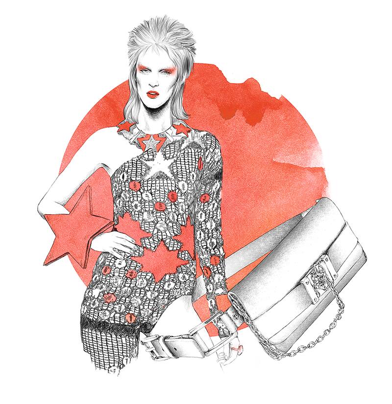 Bowie-esque: término que se acuñó para hacer referencia a la vestimenta setentera y ochentera de estilo glam rock parecida a la que ocupaba David Bowie. Ítems esenciales de esta corriente son las "ankle boots" (botines al tobillo) y los trajes de colores metálicos, como los que se vieron en el desfile de Dries van Noten en la Semana de la Moda de París 2015 y el que ocupó la diseñadora Sandy Powell en la alfombra roja de los Oscar 2016.