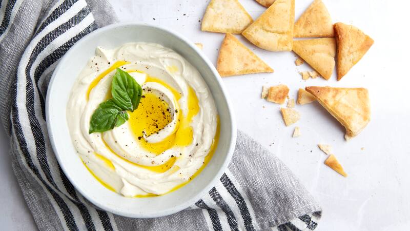 1. Mezcla el yogurt con el tahini usando un batidor de mano.