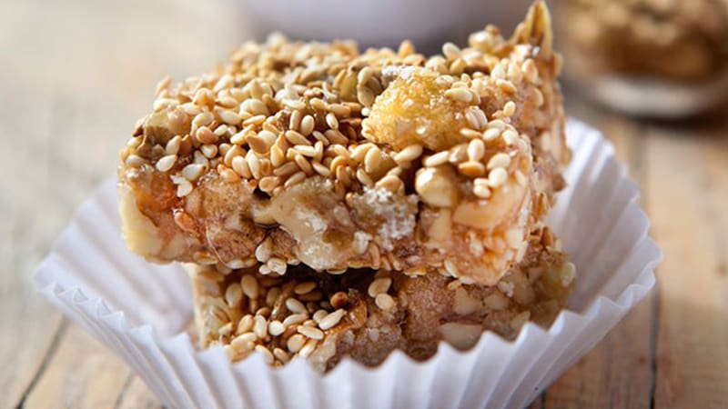 Dulce de nueces, miel y semillas de sésamo