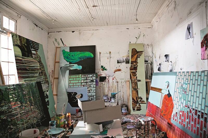 Lo que cuelga ahí son cuadros que termina y vuelve a terminar para la exposición que inaugura el 30 de marzo en el Museo de Artes Visuales (Mavi), donde también lanzará el libro La falsa modestia, en el que repasa los 20 años que lleva exponiendo, con textos propios y de la artista Natalia Bavarovic. Y donde también exhibirá sus propias películas, unos diálogos bizantinos entre profesores y alumnos sobre lo imposible que es hacer arte; Gumucio se gana la vida haciendo clases en la universidad.