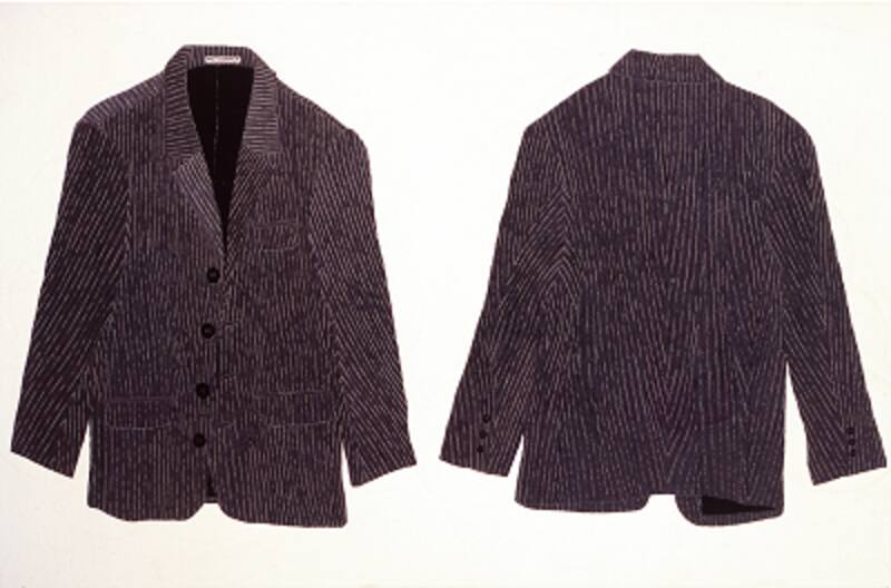 La forma en que el bordado produce apariencias en la superficie, sugirió al artista una variedad de analogías con el vestido. Acá la obra Saco, 1996-99. 115 x 175 cm.