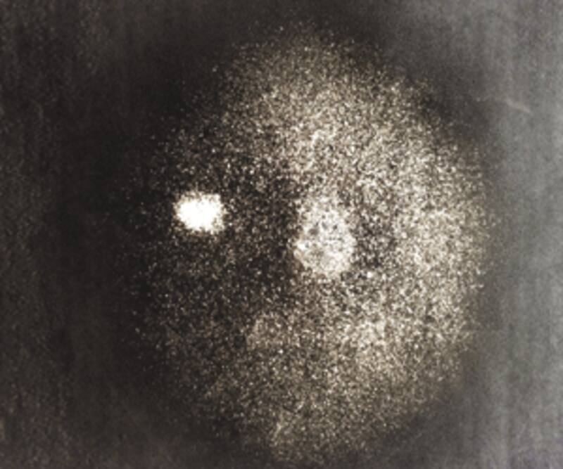 Grabado con residuos de carbón, materia de colección Chile-UE. Monotipia, 2014.