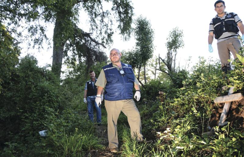 El perito criminalista Jaime Brieba (50) recorre paso a paso un terreno baldío en Panguipulli en el km 3 del camino hacia Los Lagos, donde unos niños hace un año encontraron muerto a Jonathan Martínez, "El gatito", de 25 años. Las hojas crujen bajo los pies de Brieba y él trata de imaginar cómo podría haber rodado hasta ahí el cuerpo, con el cuello cortado hasta la oreja, de espaldas, dando un giro en el aire hasta quedar con su cara inerte, mirando a Panguipulli desde lo alto, tras una pelea de borrachos en una cancha de fútbol el 21 de septiembre de 2014.