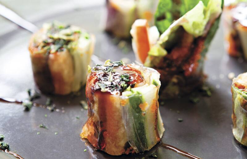 3. Con ambas manos enrollar con cuidado (el papel de arroz contiene almidón y se pega en las manos).