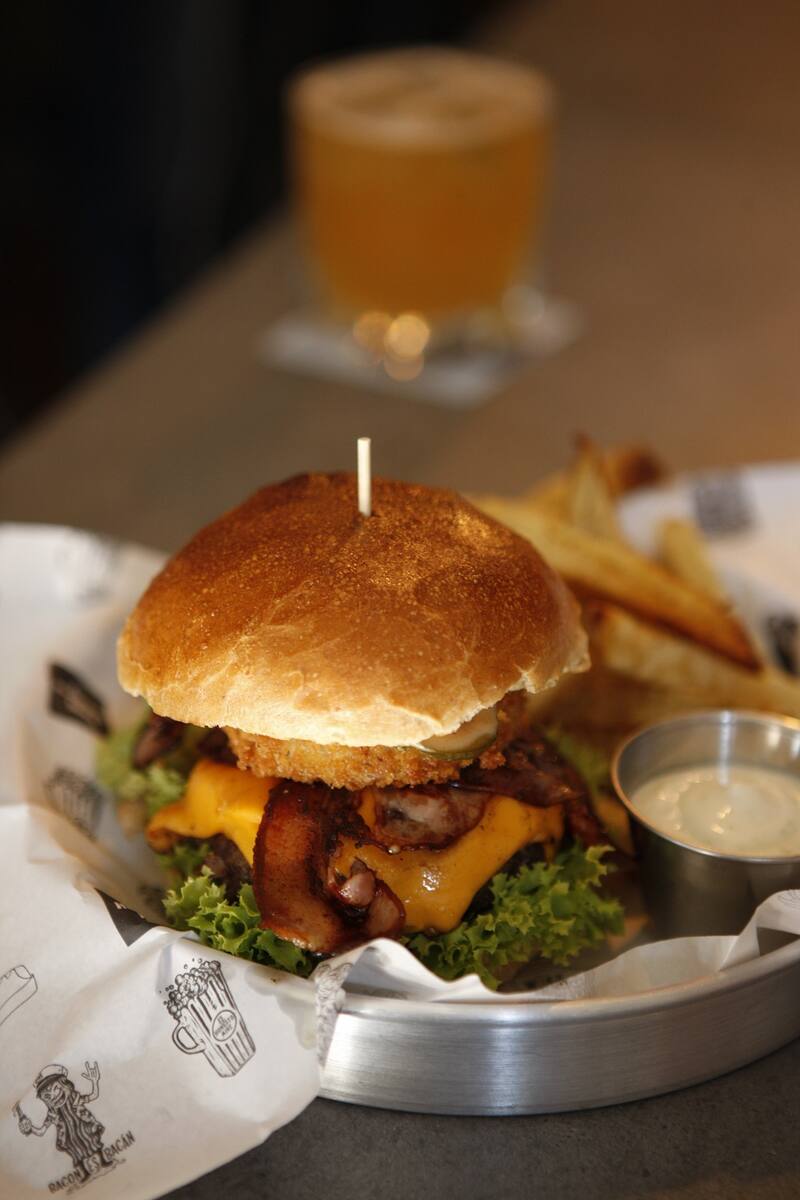 1.- Making Burgers Great Again: hamburguesa de vacuno, salsa secreta (a base de alioli y mayonesa casera), lechuga, queso cheddar, tocino, aros de cebolla fritos y pepinillos, acompañada de papas fritas ($6.400).