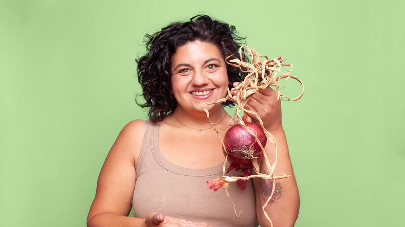 Hace poco, Dalal se encontró con una publicación en redes sociales que decía: “Qué cosa dócil la cebolla, que si la agarrás en crudo te escupe ácido, pero si la calentás un toque, se sarpa en dulzura. Soy una cebolla”. Ella se sintió identificada con esta comparación. “Cuando empiezas a entender cómo cocinar la cebolla, cómo caramelizarla, te das cuenta de que te puede hacer llorar porque es muy fuerte, pero si la trabajas un rato, la calientas lentamente –eso suena medio porno, dice riendo– se vuelve dulcesita. Solo necesita tiempo y paciencia, algo que a mí me falta, pero que la cebolla me obliga a practicar. Me parece un proceso mágico”, reflexiona.