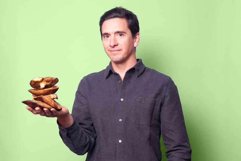 Su pasión por el mundo fungi comenzó cuando conoció a Giuliana Furci, directora de la Fundación Fungi, gran micóloga chilena y mundial, e inmediatamente identificó que “aquí hay algo muy potente”. Además, asegura que Chile es multimillonario respecto de los hongos; hay muchas zonas que aún no están explotadas. Un desconocimiento que, cree, tiene que ver con nuestra historia. “En los años 70 se limitó el acceso a muchas cosas y en los 90, con el retorno a la democracia, lo que entró mayormente fue lo gringo con una filosofía de consumo masivo muy dura, de productos procesados. Y eso es lo que perduró. Hoy, ¿qué come la gente? Lo que el consumo quiere que coma. Entonces, no es que el hongo no se coma porque no les gusta, es que no lo tienen al frente. Tengo hijos pequeños y un día les fui a hacer clases de cocina al jardín. Me paré al frente del curso y les dije, vamos a hacer panqueques. Antes de partir, les pregunté de dónde vienen los huevos, y uno me respondió ‘del Jumbo’”, recuerda.