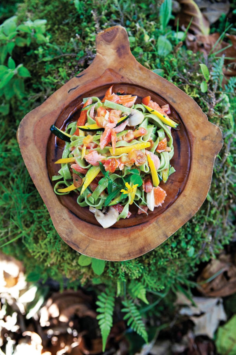 Linguini de espinaca con trucha ahumada (para 4 personas)