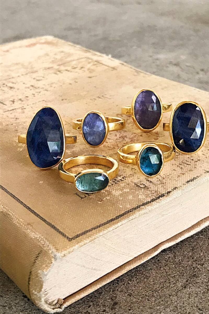 Producto destacado: colección de anillos de piedras semipreciosas.