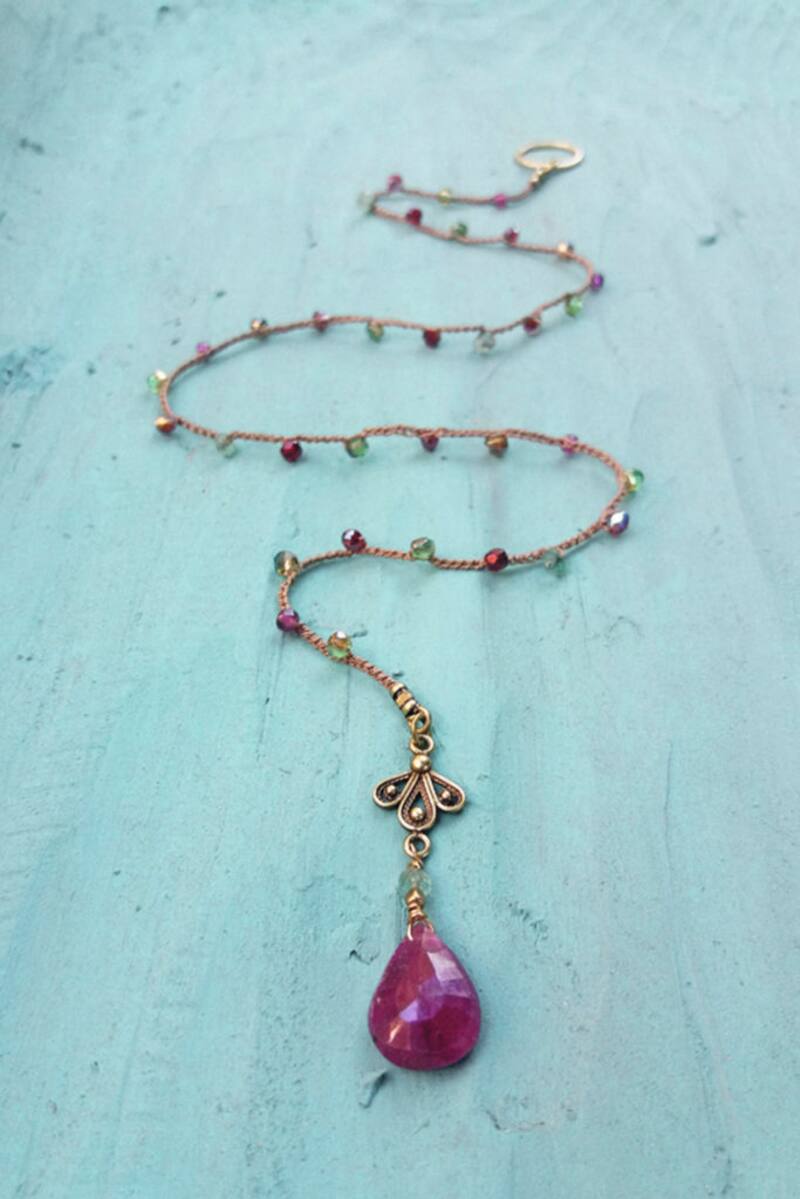 Producto destacado: Collar tejido con seda con piedras semipreciosas y cristales.