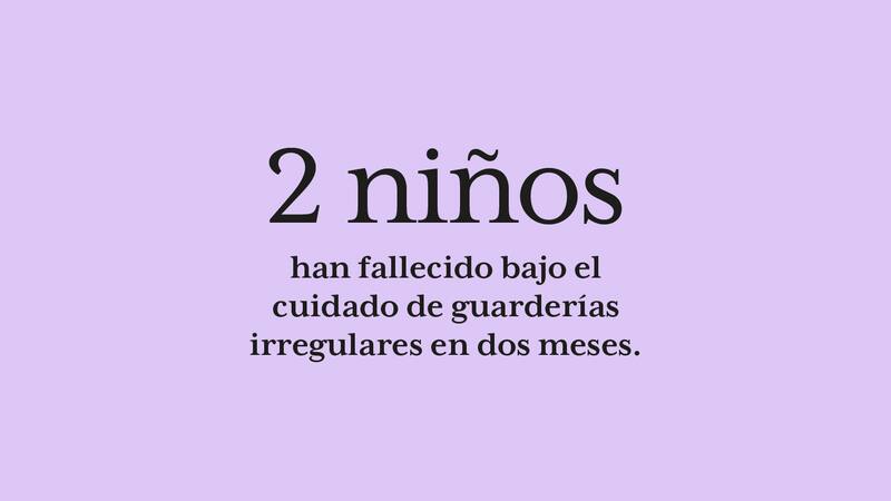 En dos meses, dos niños han fallecido bajo el cuidado de guarderías irregulares