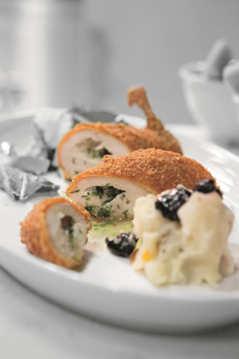 De ese tiempo en Bristol, rescata este plato: el Pollo sorpresa (ver receta) que cocinaba en el restorán de Filippo. "Es un clásico de la cocina de los 80 y gusta mucho; es crujiente y la sorpresa es que al partirlo, dentro tiene la mantequilla".
