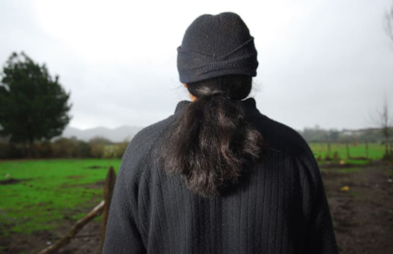 Jaime Huenchullán (28) conoce los allanamientos desde los diez años. Está prófugo en Temucuicui, acusado de incendios y amenazas. No tiene casa. Ni pertenencias. A veces duerme en los cerros. Usa pantalón militar y gorro. Tiene el pelo negro brillante y largo. Llueve, pero parece que no se mojara.
