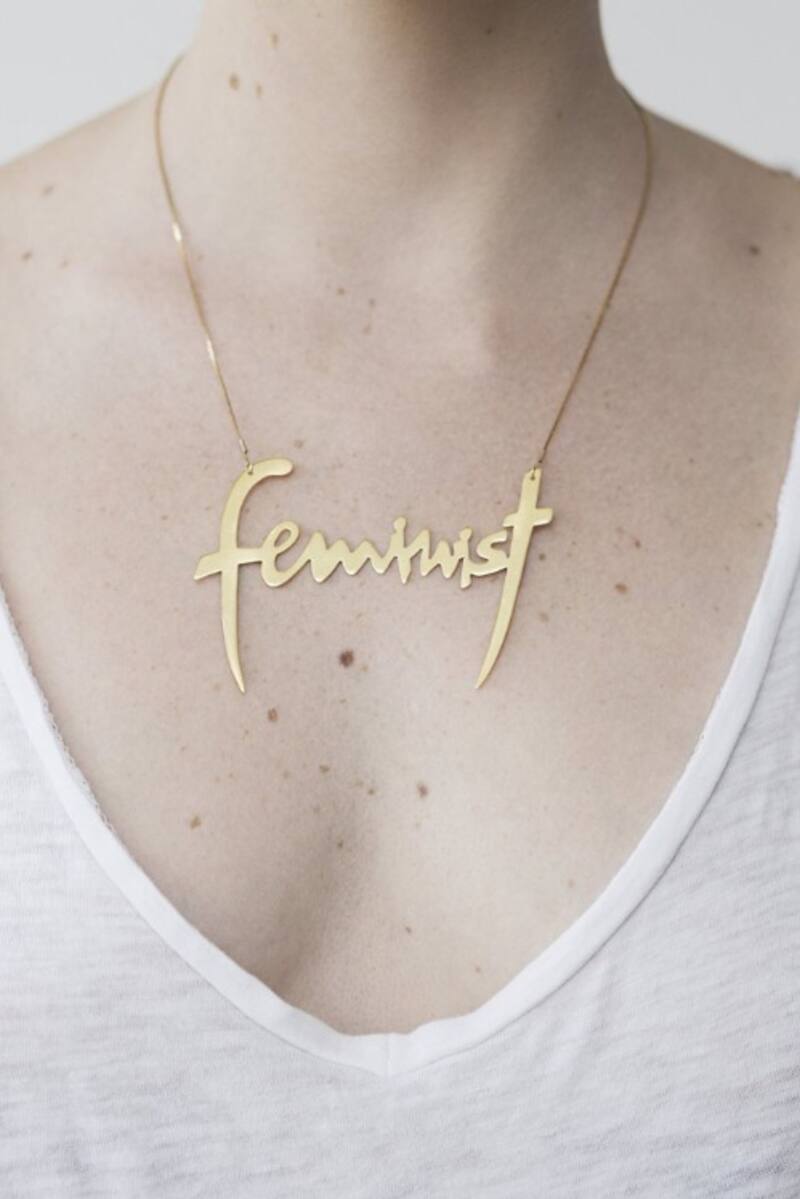 La artista valdiviana Francisca Izquierdo (39) tiene una línea de colgantes inspirados en la mujer, con mensajes como On my period, feminist ($ 60.000 la versión plata), latina, mestiza, rubia y morena. Son de bronce, cortados, lijados y pulidos a mano y se pueden encontrar en versión bañada en oro de 24 quilates o plata 950. Disponibles en www.esfranca.com y tiendas Porquetevistes.
