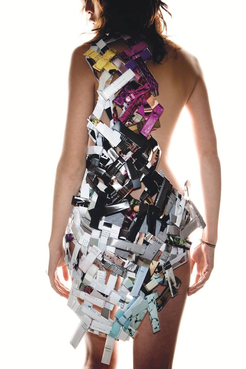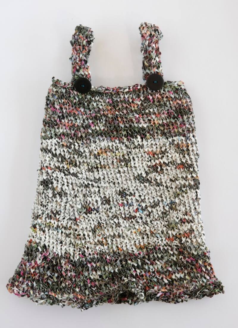 "Fue muy difícil trabajar con papel. Primero trencé y tejí pedazos gruesos, pero quedaban sin forma. Hice cuadraditos de muestra hasta que encontré el punto y el tejido adecuados. Corté tiras muy delgadas, casi como hilos, y usé palillos circulares. Tejí todo sin ningún corte. En una sola pieza. Lo que tejí con papel no sólo es una prenda de vestir, es también un símbolo que demuestra que es posible reciclar y reutilizar este material en algo concreto, bonito y útil. Creo en el craftivismo, que es activismo a través de las manualidades. Esto, más que ser un hobby, es una manifestación. ¿Para qué comprarme un vestido si lo puedo hacer yo?", Camila Larsen (23), estudiante de Periodismo.