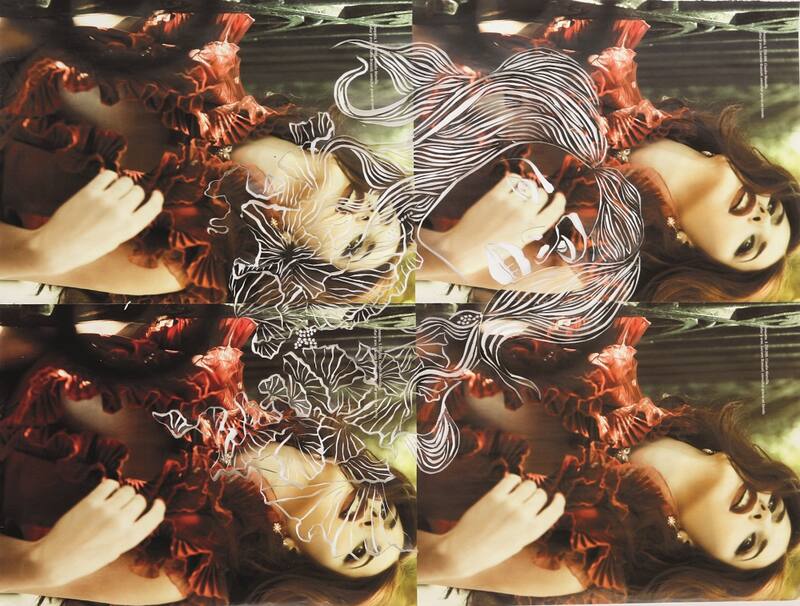 Mis últimas ilustraciones han incorporado fondos y formas de papel. El material lo tomé con mucho cuidado y respeto, porque resultó ser un papel couché bastante traicionero y poco dócil.