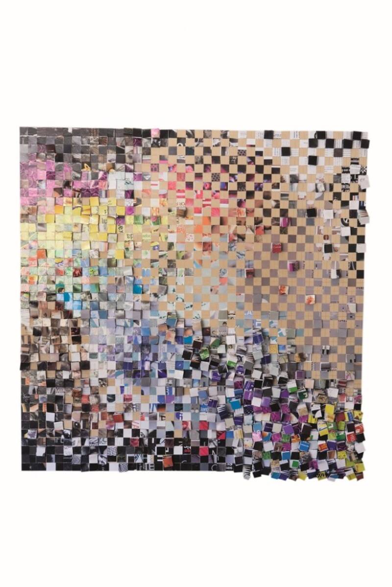 Papel de diario o guías de teléfono: en cada uno de sus trabajos el artista Andrés Vio (36) transforma desechos en obrasde arte. Desarma y vuelve a armar. A partir de diferentes módulos, Vio generó con la revista una cantidad infinita de combinaciones geométricas. Un triángulo. Un rombo. Una figura rectangular con dos puntas. Una secuencia de figuras que, juntas o separadas, tienen sentido. "Entendí Paula como un objeto que se puede deconstruir, ya que el concepto es similar a cómo uno lee: cada persona la ojea de distinta manera, tal como se crean diferentes composiciones con estas figuras", sostiene.