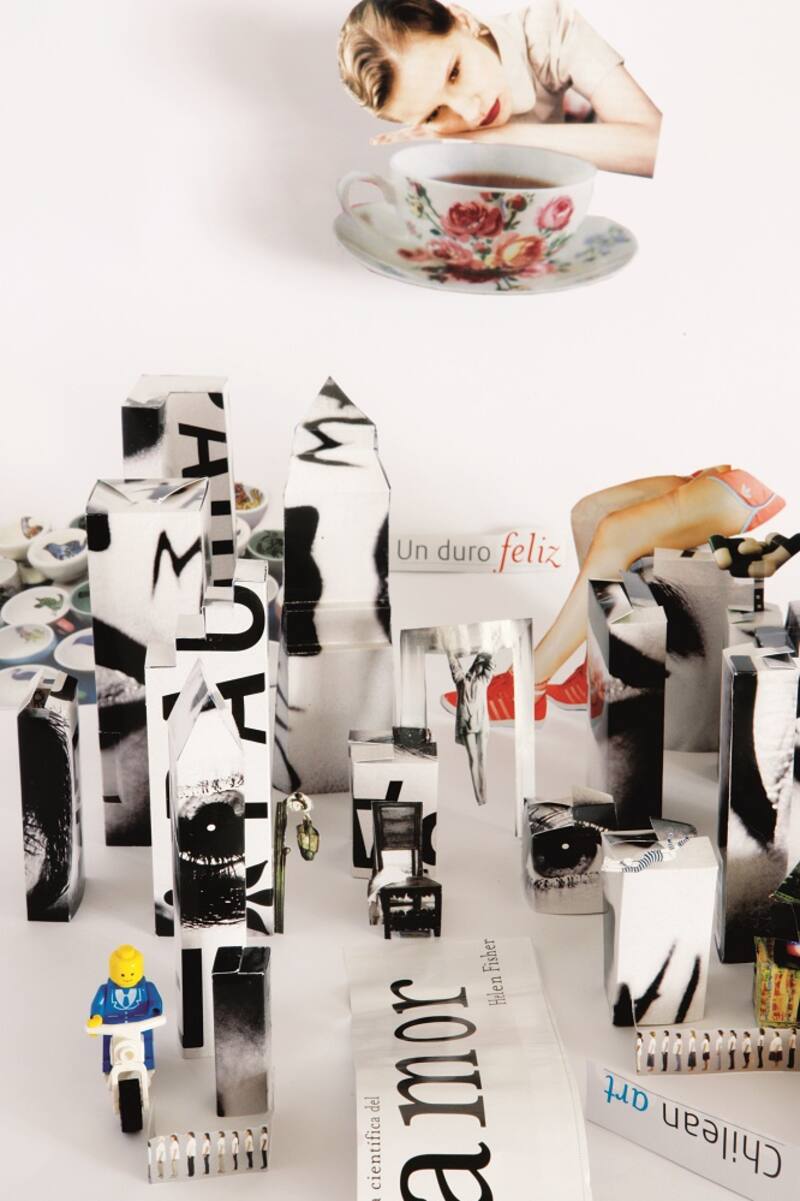 Similar al trabajo que actualmente expone en la galería Isabel Aninat –una ciudad en miniatura de 20 metros cuadrados hecha con cartón que realizó en conjunto con Trinidad Pacheco– la artista María Feuereisen (24) creó pequeñas edificaciones con las páginas de Paula. Caminos, puentes y casas de papel. Su propuesta se enmarca dentro de un nuevo fenómeno: el boom de réplicas y modelos arquitectónicos a pequeña escala hechos con este material. Uno de los mejores exponentes de este arte es el japonés Wataru Itou, un estudiante de Diseño que durante cuatro años dobló y cortó hojas blancas para hacer un espectacular castillo, que está expuesto en la isla artificial Umihotaru, en la Tokyo Bay Aqua- line. Su modelo tiene iluminación y un tren que se mueve. Todo 100% papel.