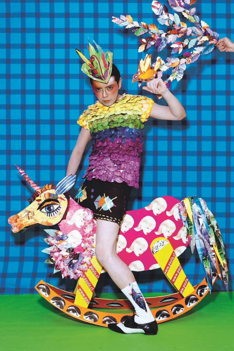 Cuando Adolfo Bravo (27) supo que debía usar Paula como material de trabajo, recordó las largas horas que pasó en su infancia observando las producciones de moda y recortando las fotos para hacer collages. "Para mí Paula significa frescura. Su propuesta visual refresca la vista y el colorido de sus páginas es muy alegre", asegura. Y eso fue lo que este estudiante de Dirección de Arte quiso transmitir con el mundo infantil que construyó a partir de técnicas como collage, origami y papel maché. Así, transformó en realidad su juego de infancia y usó las páginas de la revista para recrear el mundo fantástico que imaginaba cuando niño.