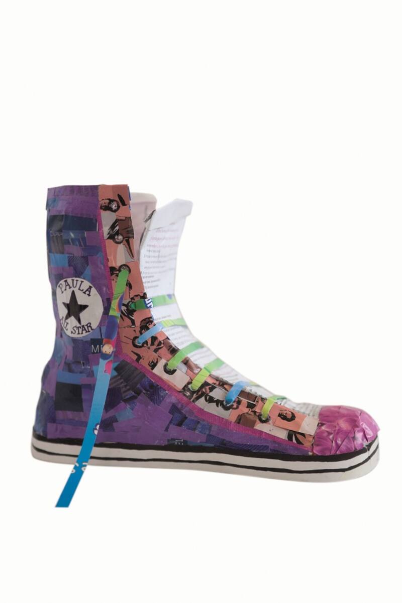 En las vitrinas de las tiendas Size?, en Londres, uno de los lugares favoritos de los fanáticos de las zapatillas, acompañan sus productos con modelos similares hechos de papel. Los hace el estudiante de Ilustración, David Brownings, con una técnica similar al origami: dobla papeles de colores hasta conseguir que su trabajo se asemeje a los sofisticados modelos de zapatillas de la tienda. Es un ídolo entre los coleccionistas y su obra fue destacada en la revista Print, que publica a los mejores diseñadores contemporáneos. A partir de su trabajo, invitamos a la artista Carolina Kommer (29) a hacer su propia versión con las páginas de Paula.