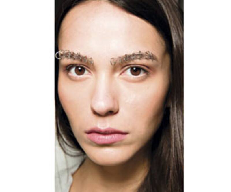 Respetando el lugar que las cejas se han ganado en las últimas temporadas, Rodarte optó por accesorizarlas en vez de engrosarlas y despeinarlas. Lo que hizo fue aplicar argollas plateadas dándoles un aspecto punk a sus modelos, como parte de una colección marcada por llamativos looks para el día y la noche.