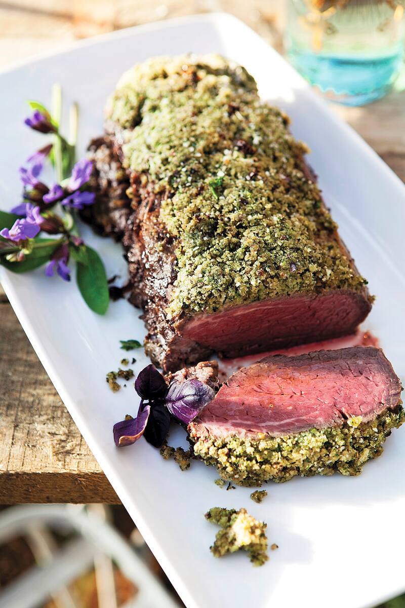 Filete con costra de pan con hierbas