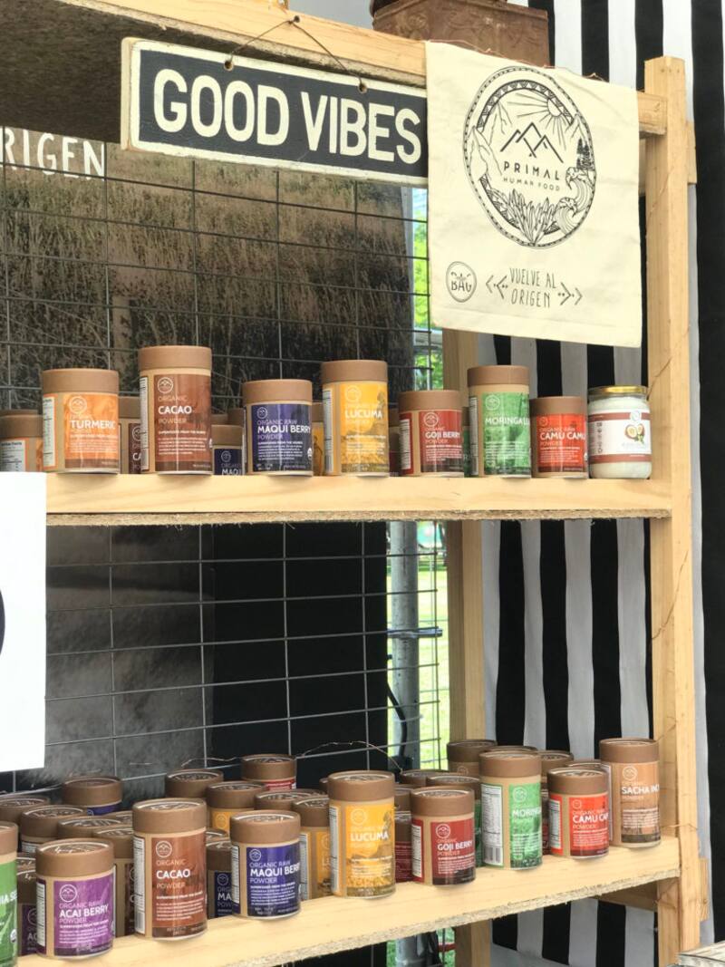 6. Primal (stand 68): "Tienen una súper buena variedad de los mejores súper alimentos y orgánicos. En Mercado Paula descubrí que incorporaron a su línea de cúrcuma orgánica y harina de hemp (de cáñamo). También tienen té verde matcha, camu camu, cacao en polvo, moringa, sasha inchi".