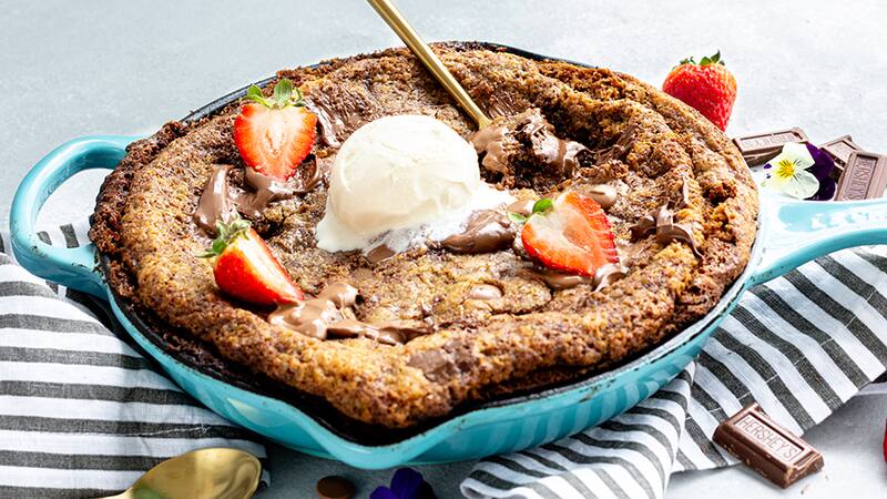 7. Cocinar por 30 minutos, o hasta que los bordes hayan comenzado a dorarse y el centro siga suave. Servir inmediatamente, con una bolita de helado de vainilla.