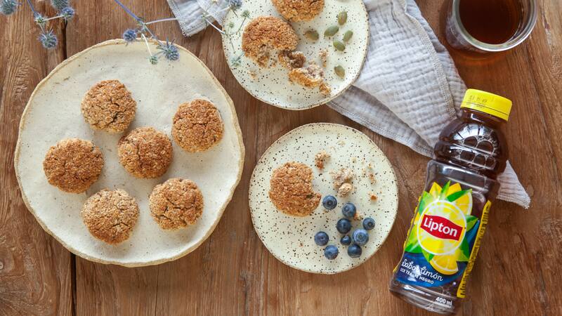 En un bol mezclar las harinas, el coco, el azúcar y los polvos de hornear. Luego, agregar la chía, la ralladura de limón y el aceite de oliva, revolviendo bien. Por último incorporar de a poco el Ice Tea Lipton sabor limón hasta dar con una masa húmeda que no se desmigaje.