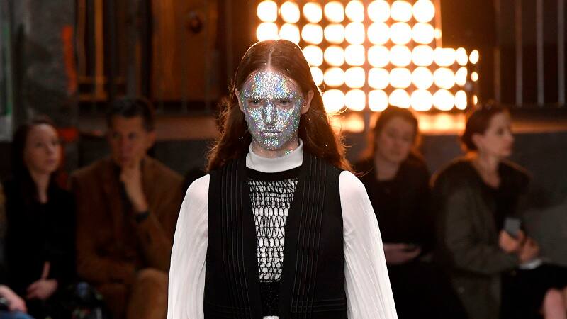 La colección del diseñador italiano destacó por presentar principalmente vestidos románticos con toques sesenteros, y donde el gran protagonista fue el maquillaje hecho con escarchas que se repartían por todo el rostro. Aquí un repaso de las prendas.