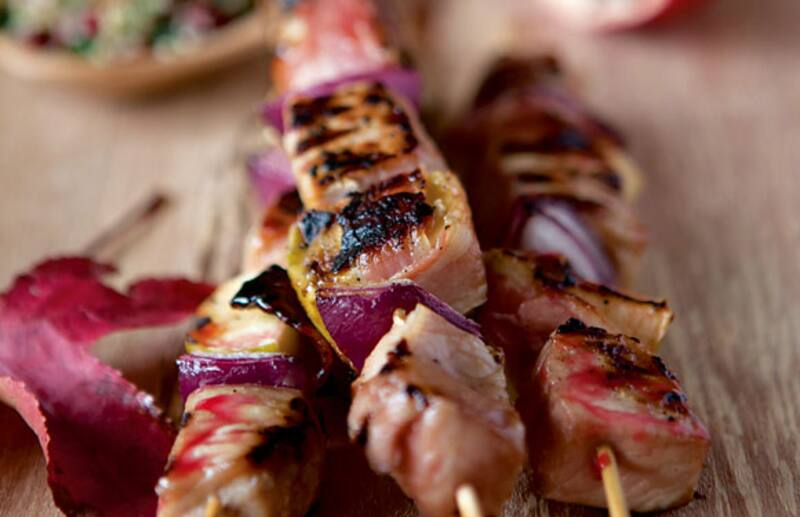 - Brochetas de cerdo marinado en almíbar de granada (para 4 personas)