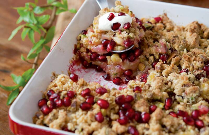 - Crocante de pistachos con peras, manzanas y arilos de granada (5-6 personas)