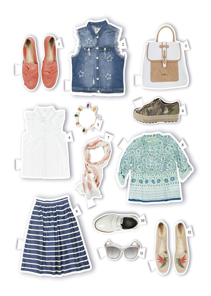 1. Alpargatas, $ 89.900, Saville Row. 2. Chaqueta Blugirl, $ 22.990, Tricot. 3. Mochila, $ 32.900, Sei. 4. Blusa Blugirl, $15.990, Tricot. 5. Pulsera, $ 322.000, Tous. 6. Zapatillas, $ 56.990, Cat. 7. Pañuelo, $185.000, Brooks Brothers. 8. Blusa, $ 89.990, Rapsodia. 9. Pollera, $ 252.000, Polo Ralph Lauren. 10. Zapatos, $179.990, Cole Haan. 11. Anteojos Jimmy Choo, $199.900, Rotter & Krauss. 12. Alpargatas, $139.900, Castañer.[/caption]