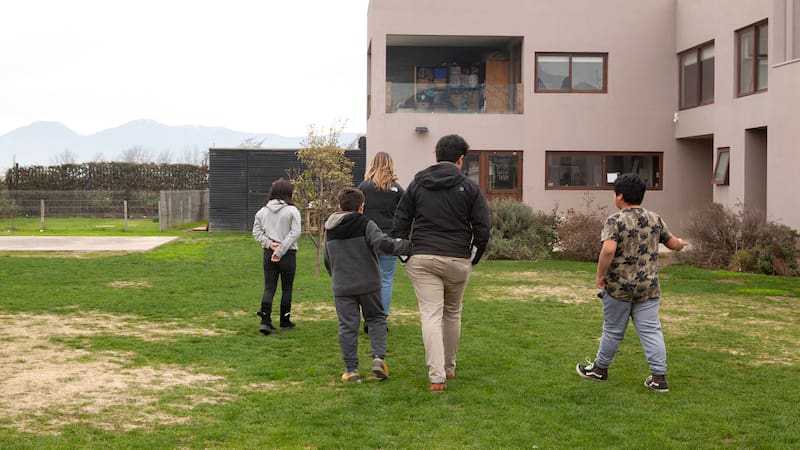 Desde fuera, la residencia parece cualquier cosa menos un hogar de niños o una casa de acogida. Muy por el contrario. Su arquitectura es la de una casa familiar moderna, de un alto nivel económico. Y seguramente ese fue su origen. Pero los dueños la pusieron en arriendo y Pilar y Franco decidieron que era un buen lugar para recibir a muchos niños, por sus cómodos y amplios espacios. “Lo primero que pensé cuando decidí hacer una residencia, es que los niños y niñas se tienen que sentir seguros allí, en familia. Lograr que confíen en nosotros y para eso el lugar donde vivan también es importante. Acá cuando un niño o niña está enojado le decimos vamos a caminar, tenemos un cerro y lo acompañamos en ese proceso”, cuenta Pilar.