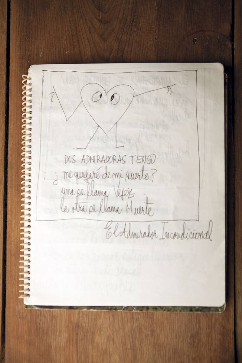 "Un día llegamos y no estaba contento. Dijo: 'Esto es el caos, entran y salen cuidadoras y enfermeras distintas. Lo único que quiero es caminar y caminar a la playa, y hundirme en el mar. No sé qué pasará con esto, pero no hay nada que hacer, hay que leer al poeta colombiano Gonzalo Arango, líder del nadaísmo", lee en su libreta.