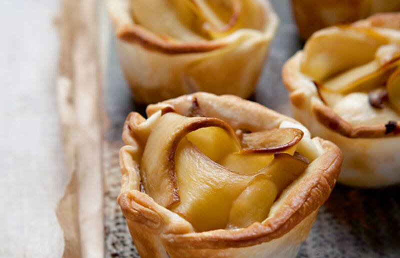 2. Precalentar el horno a temperatura media. Pincelar con aceite 8 moldes para muffins o timbales, forrar el interior con las masas presionando para cubrir la base y los bordes. Hornear 4 minutos o hasta que la masa esté ligeramente cocida. Retirar del horno. En cada molde distribuir la cebolla reservada, mozzarella y reservar.