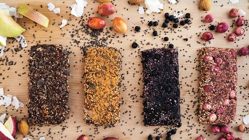 Lanzamiento: bocaditos de cacao orgánico 75% con maqui, y barritas energéticas sabor murta, maqui, manzana y rosa mosqueta, todas hechas con chía, amaranto y frutos liofilizados sin azúcar.