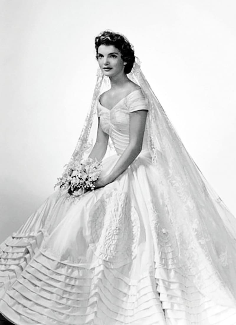 El vestido de novia: fue creado por la diseñadora afroamericana Ann Lowe, quien a mediados del siglo XX fue definida como "el secreto mejor guardado de la élite norteamericana", responsable de los trajes de las familias Rockefeller, Dupont y Auchincloss (familia del padrastro de Jackie). Lowe usó 45 metros de tafetán de seda color marfil en el traje nupcial de Jackie. Actualmente, una selección de sus diseños pueden verse en el The Fashion Institute of Technology, de Nueva York, como parte de la muestra Black Designers, que estará abierta al público hasta mayo de este año. www.fitnyc.edu/museum