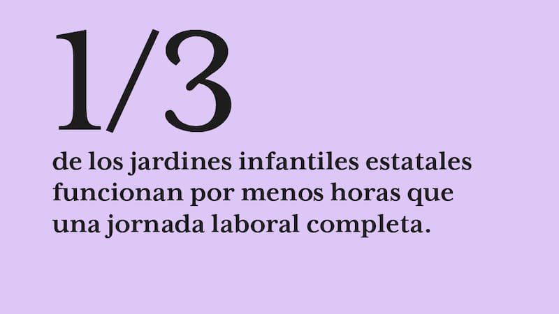 Que más del 30% de los recintos preescolares de la red estatal cierren sus puertas a las 16:30 hrs, representa un obstáculo fundamentalmente para las madres –principales cuidadoras de los hijos e hijas–, que realizan trabajo de tiempo completo. No estamos hablando de un problema de pocos, si consideramos que el 82% de la oferta actual de salas cuna y jardines infantiles proviene del Estado.