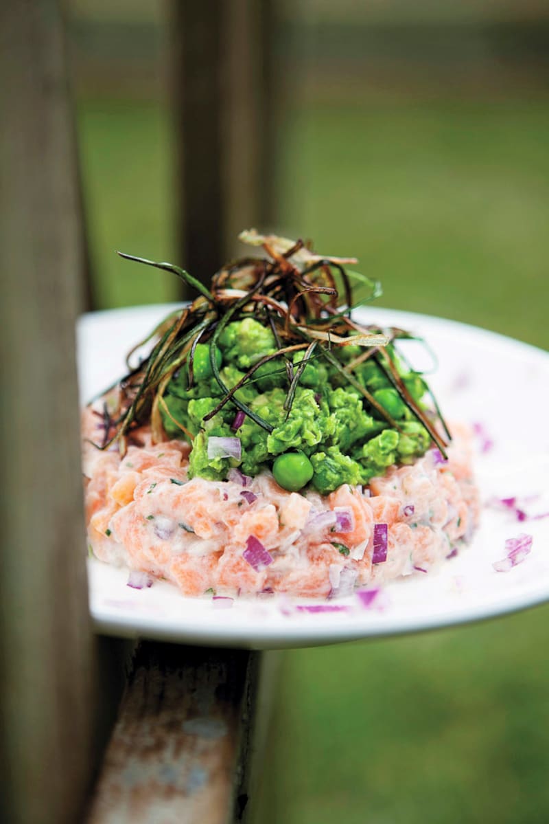 Tártaro de salmón con tapenade de arvejas con palta (para 4 personas)