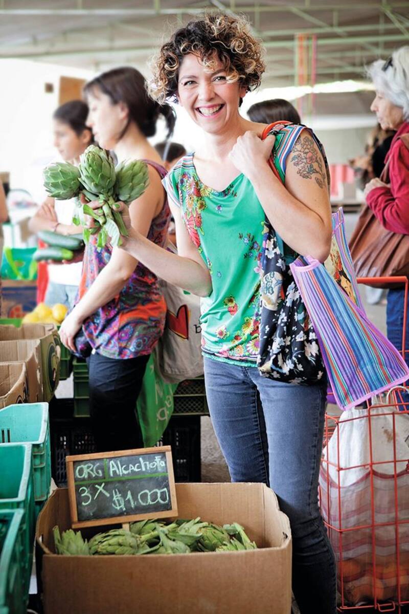 Ecoferia de La Reina, que abre los miércoles y sábados (Av Alcalde Fernando Castillo Velasco Hamburguesas de quínoa. 9750, La Reina). En la foto, comprando alcachofas orgánicas.