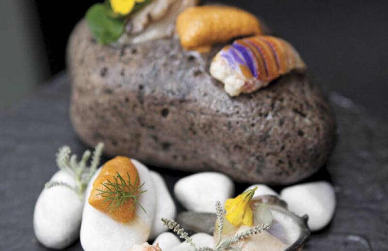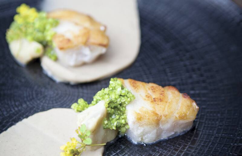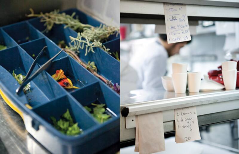 La gran obsesión de Francisco Mandiola es la presentación de sus platos. La vajilla la diseña con la talentosa ceramista Ignacia Murtagh y las piedras donde monta algunas recetas son de Pelequén, donde se las pulen a su antojo.
